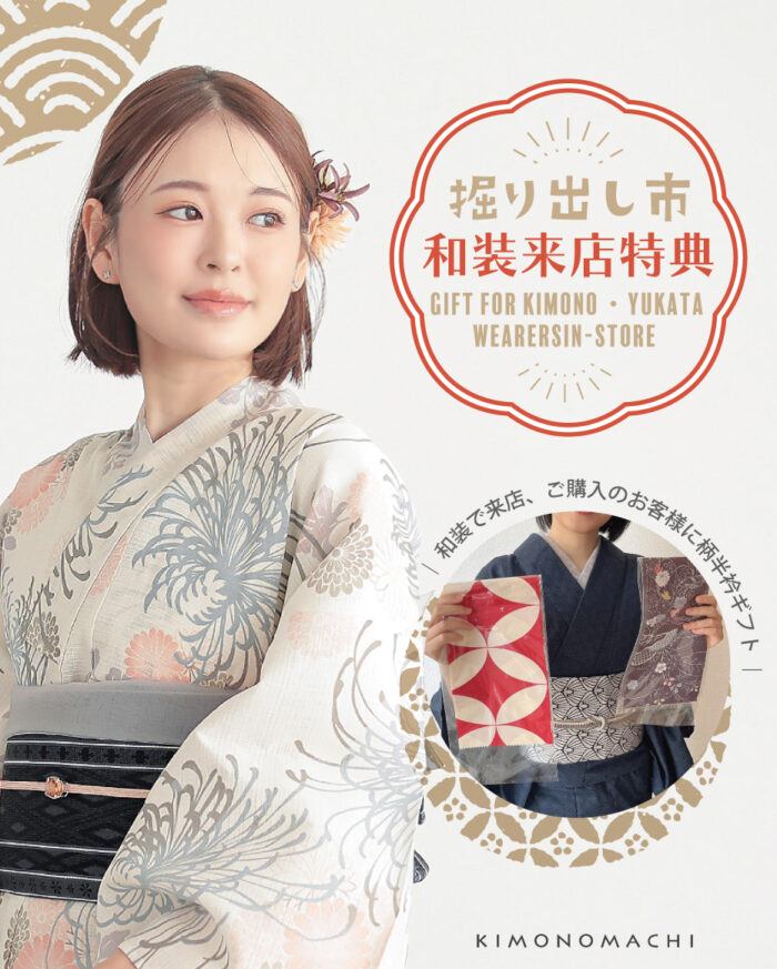 - 和装でのご来店特典:お着物や浴衣でご来店いただき、お買い物をされたお客様には「柄半衿」をプレゼント!