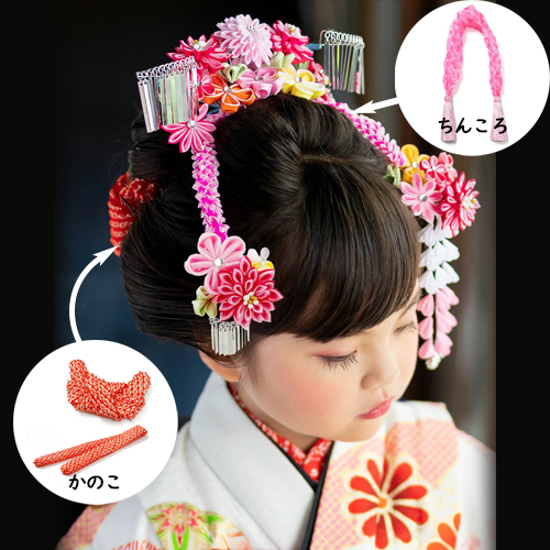 女の子の晴れ姿を彩るかわいらしい日本髪。日本髪にはいろいろな髪飾りがついています。