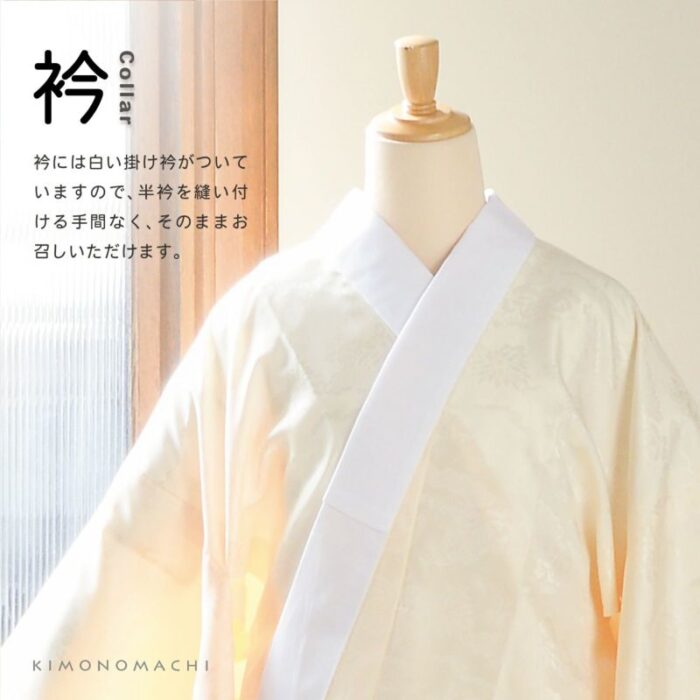 きもの町のオリジナル着物セットの長襦袢には、あらかじめ半衿を掛けてあるので安心です。
