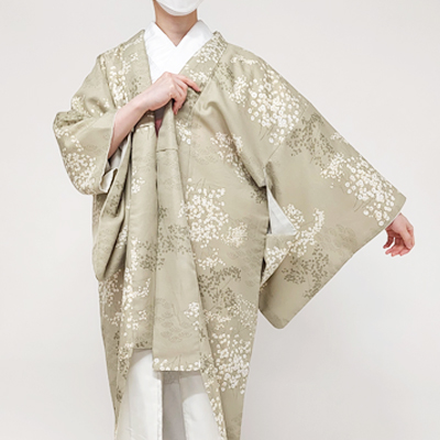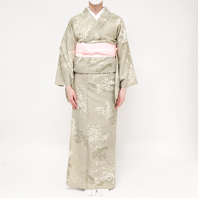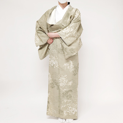 着物は2024-2025年リリースの「かすみ草に青海波 灰黄緑」です。