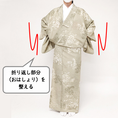 - 腰の折り返し部分を整えます。ここをおはしょりといいます。