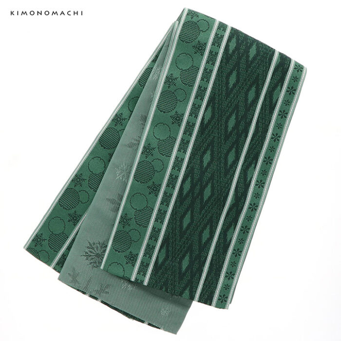 新色追加☆半幅帯「雪と菱格子 緑青」(ゆきとひしごうし ろくしょう)