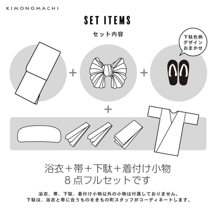 1. 浴衣単品、半幅帯セット、兵児帯セット、セパレート浴衣セット