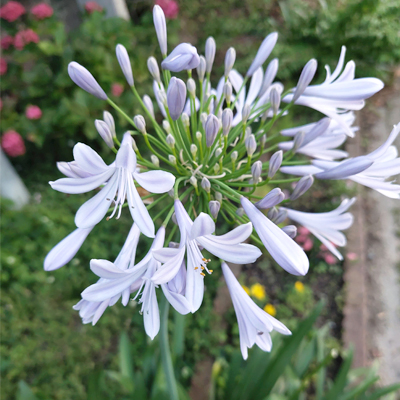 初夏に優美な青紫の花を咲かせるアガパンサスは、庭や公園、道路端の花壇で見かけたことがある方も多いかと思います。名前の由来は「アガペー(愛)の花」。これはスタッフの思い出の花で、毎年父親が丹精して咲かせた花が庭を彩っていたとか。家族への優しい思いが込められた、まさしく愛の花ですね。