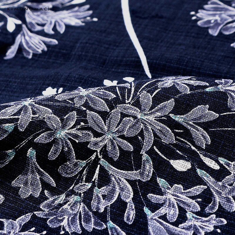 太さの違う綿糸を織り込むことで表面に凹凸を出した「変わり紅梅織り」の生地は、麻のようなざっくりとした肌触りが特徴です。張りのある生地感で着付けがしやすく、汗をかいてもベタつきにくいため、さらりと涼しげに着こなせます。