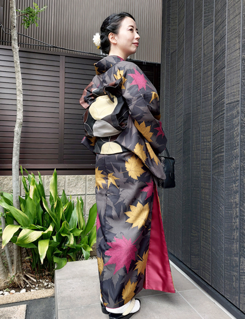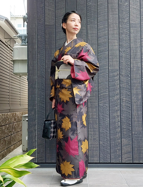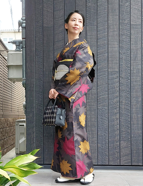 着物は2022年リリースの「楓 こげ茶」を合わせました。