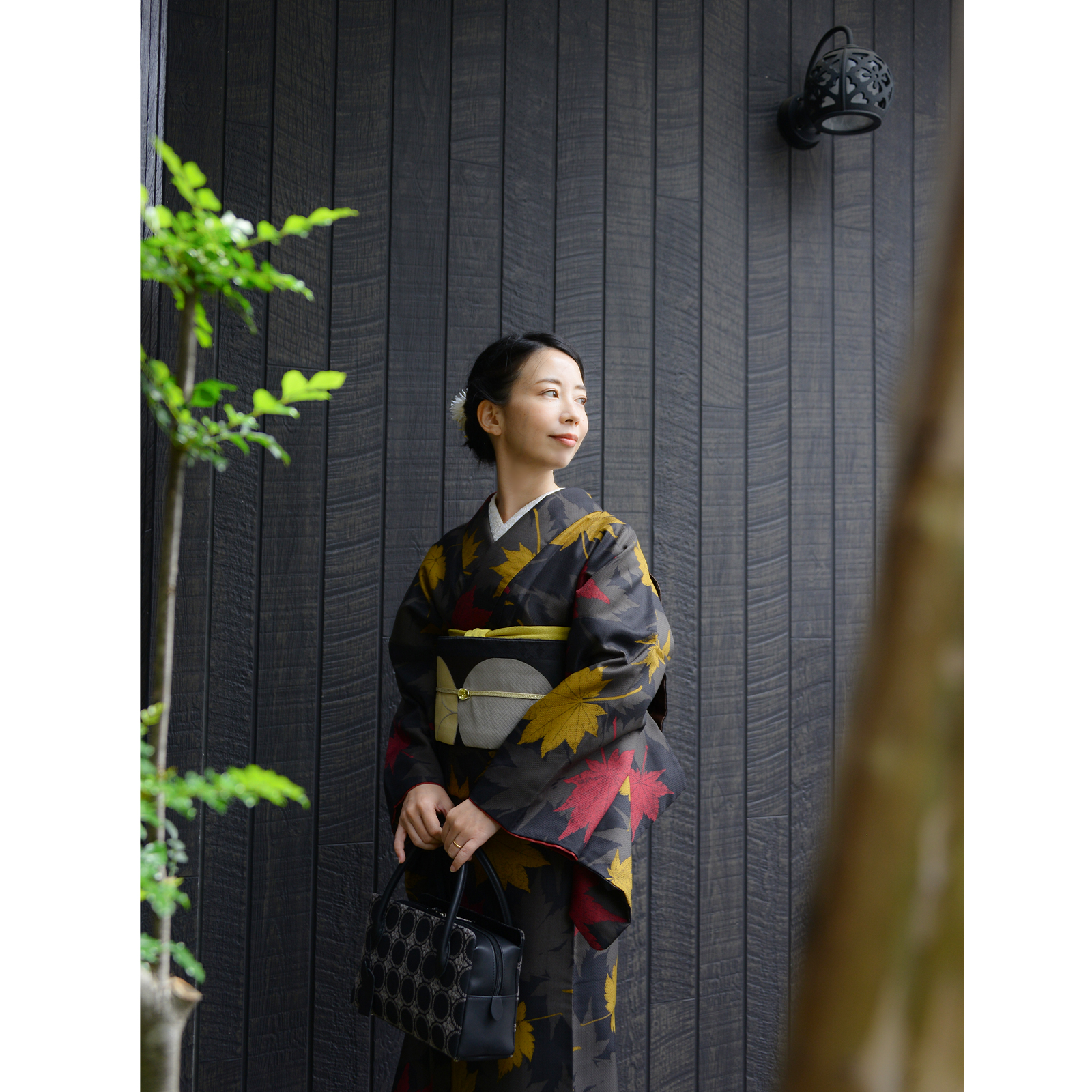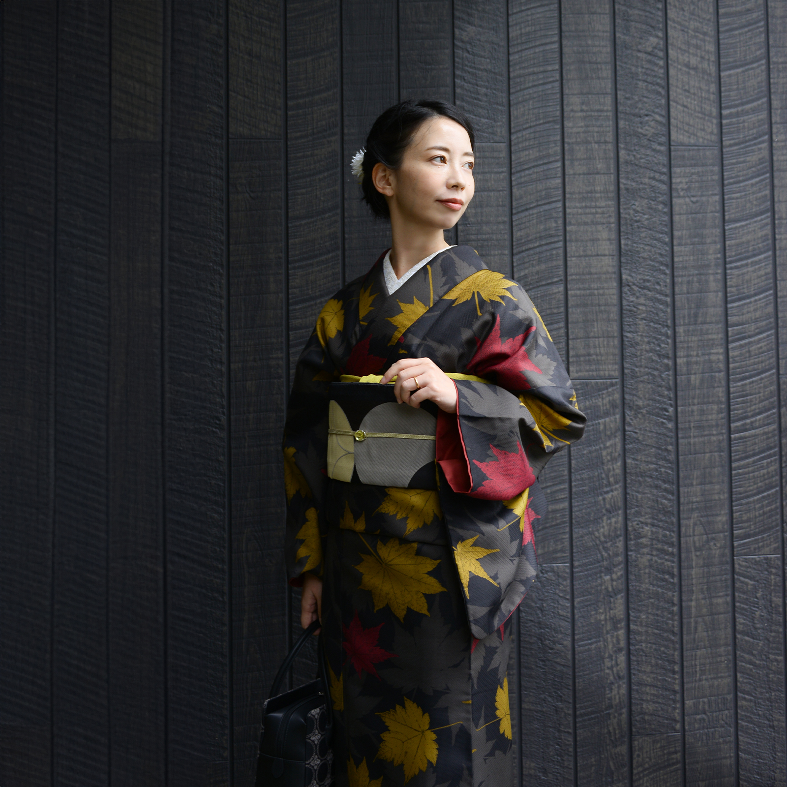 着物は2022年リリースの「楓 こげ茶」を合わせました。