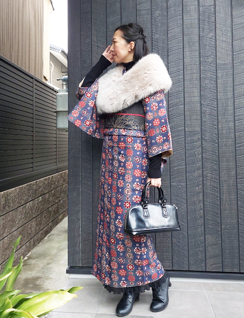 着物コーディネート144:真冬もあったか洋服ミックスブーツコーデ
